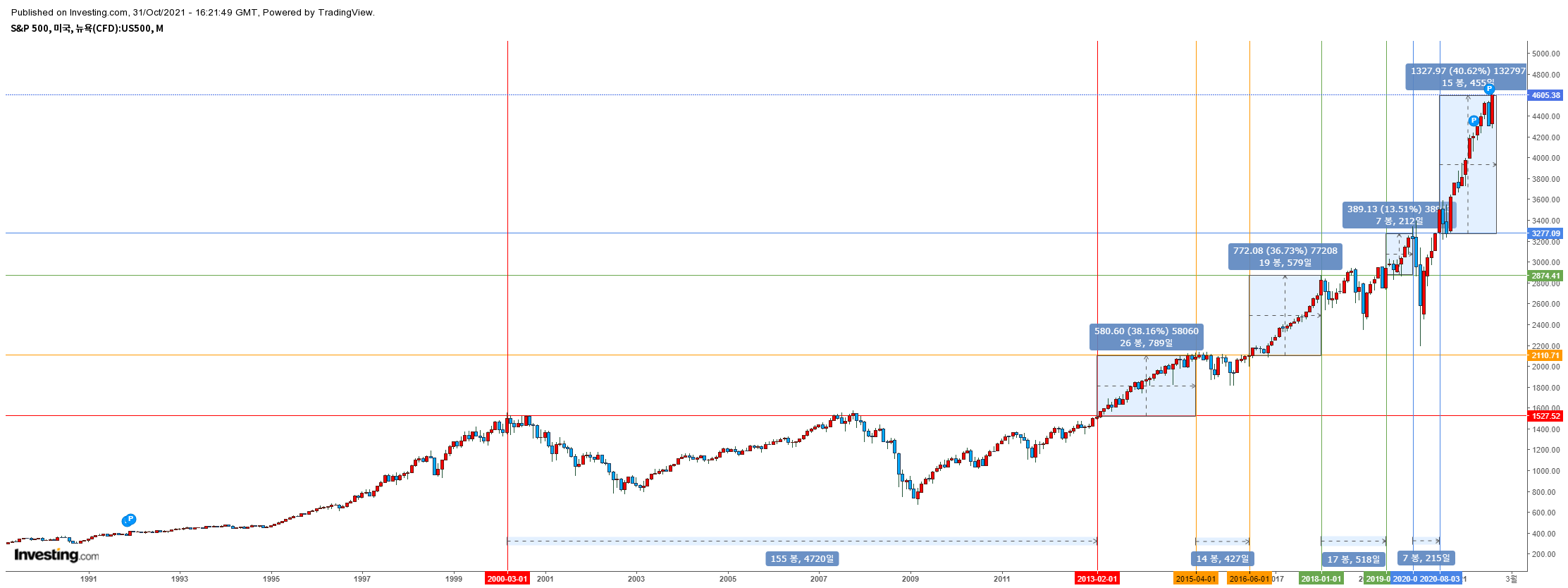 - 미국 주식의 경우에도 박스권의 모습이 있었지만, 박스권의 기간이 점차 짧아지고 있어 우상향의 모습을 띄고 있다.