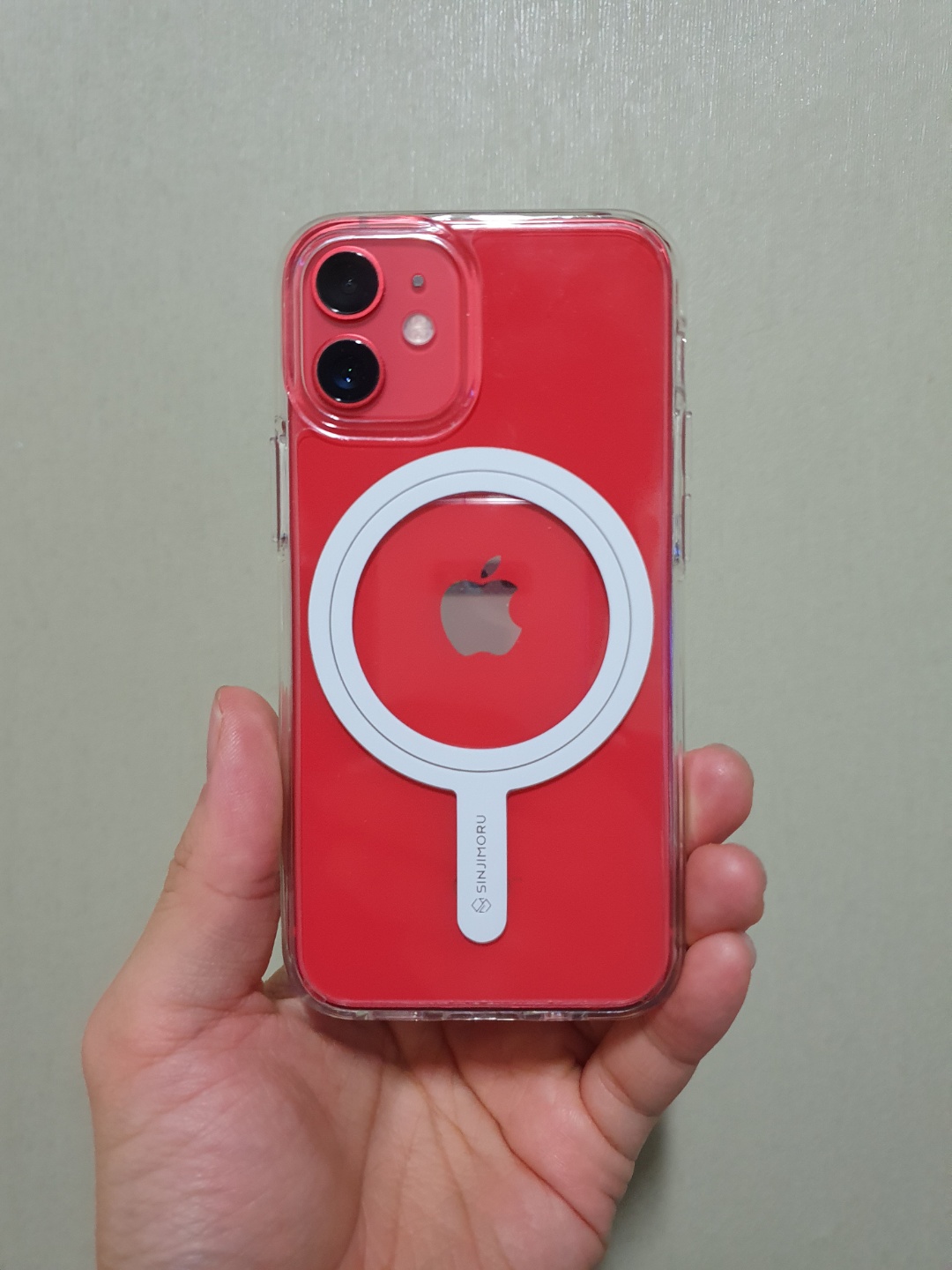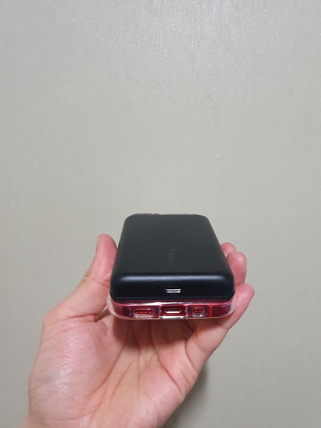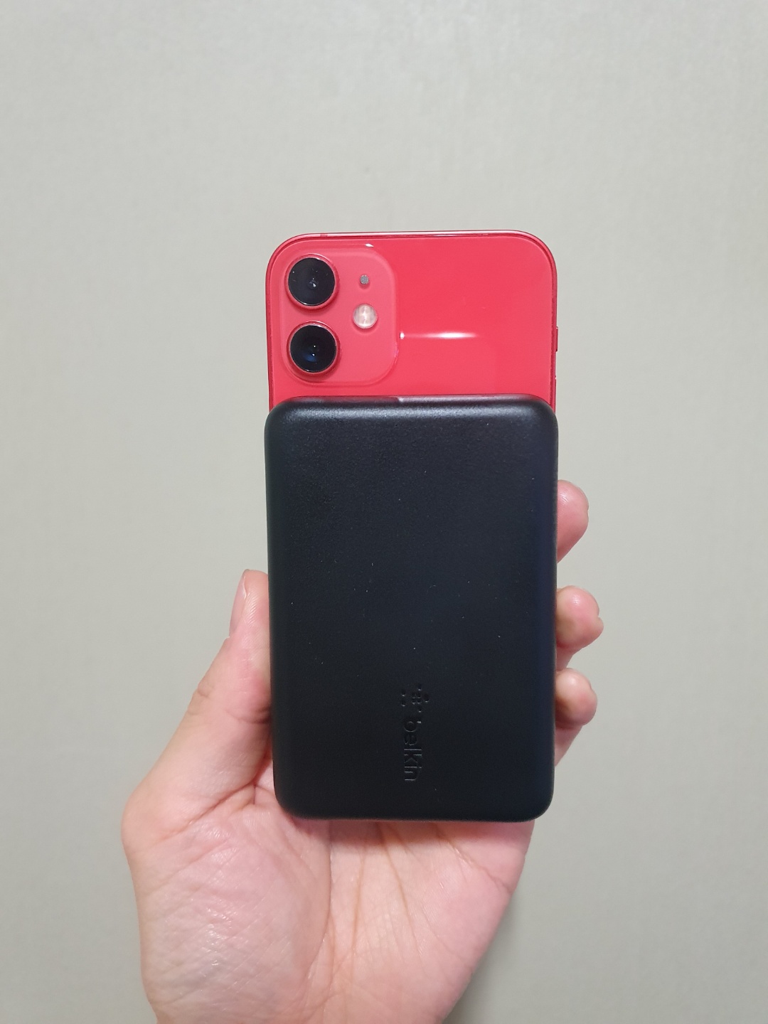 아이폰 12 미니에 보조배터리 부착한 모습입니다.